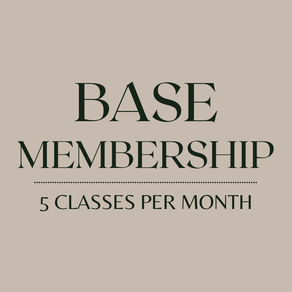 Our BASE Membership renews and replenishes 5 class credits every 30 days.